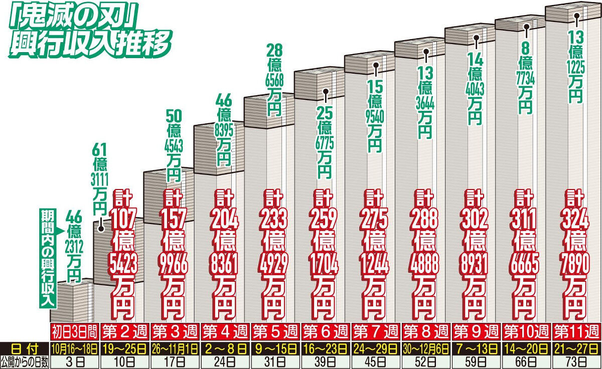 劇場版「鬼滅の刃 無限列車編」興行成績推移