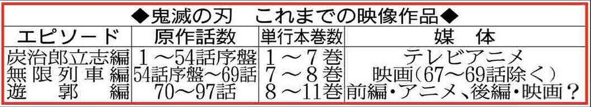 さらに注目を集めるのは続編の行方だ。「週刊少年ジャンプ」で連載された漫画家・吾峠呼世晴(ごとうげ・こよはる)氏の原作漫画は単行本全23巻で完結しているが、今回の映画公開前に放送されたテレビシリーズと合わせても、23巻中8巻までしか映像化されていない。「無限列車編」の続きとなるエピソード「遊郭編」は、原作では28話分あり、13話分の「無限列車編」と比べての2倍以上の分量。関係者は「原作順守となれば、映画1本では到底収められない。今回のヒットを踏襲して、次回もアニメで『遊郭編』をキリの良いところまで描き、残りを映画に回すのでは」と予想した。